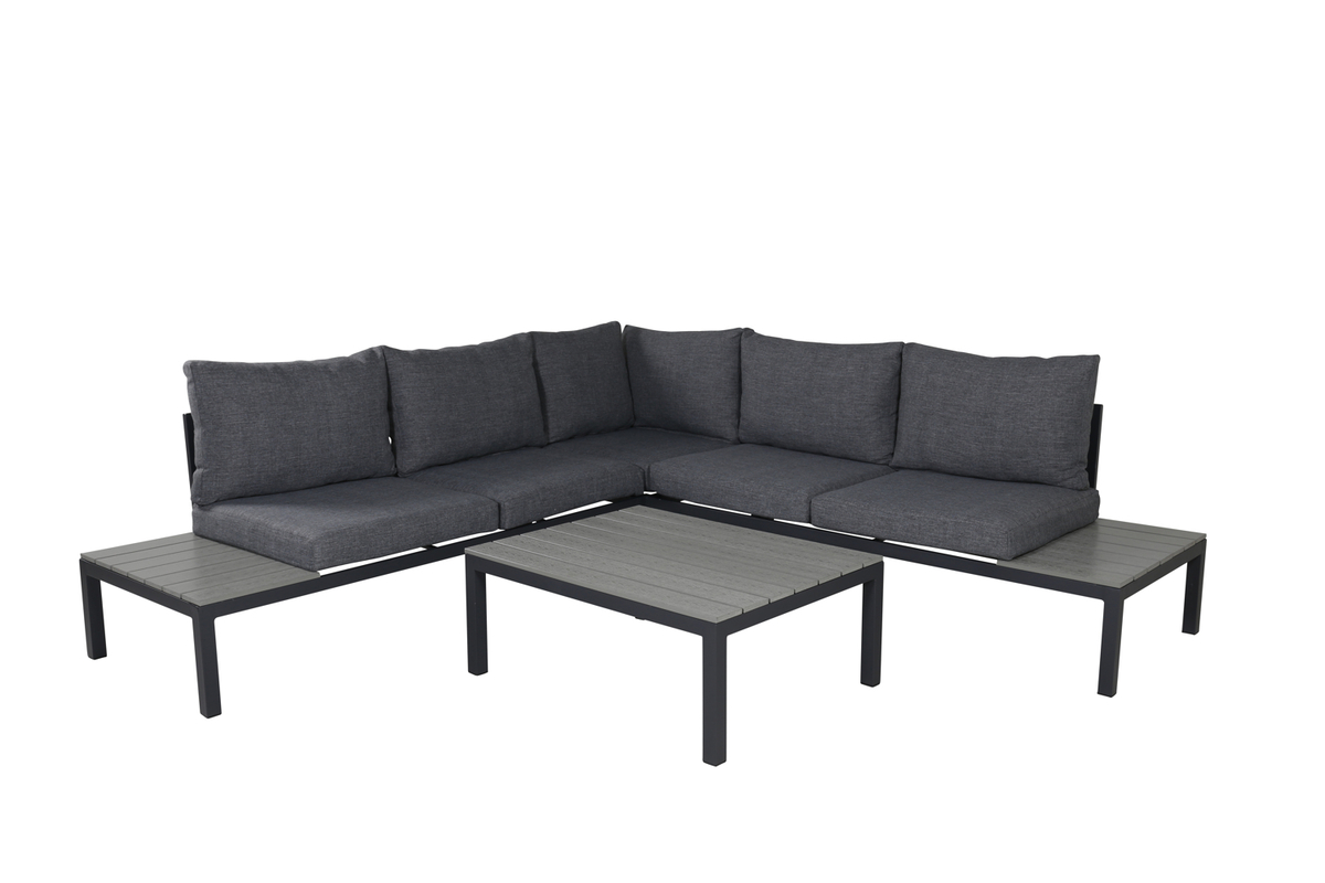 Ensemble salon extérieur en aluminium dark grey avec coussins Stilren