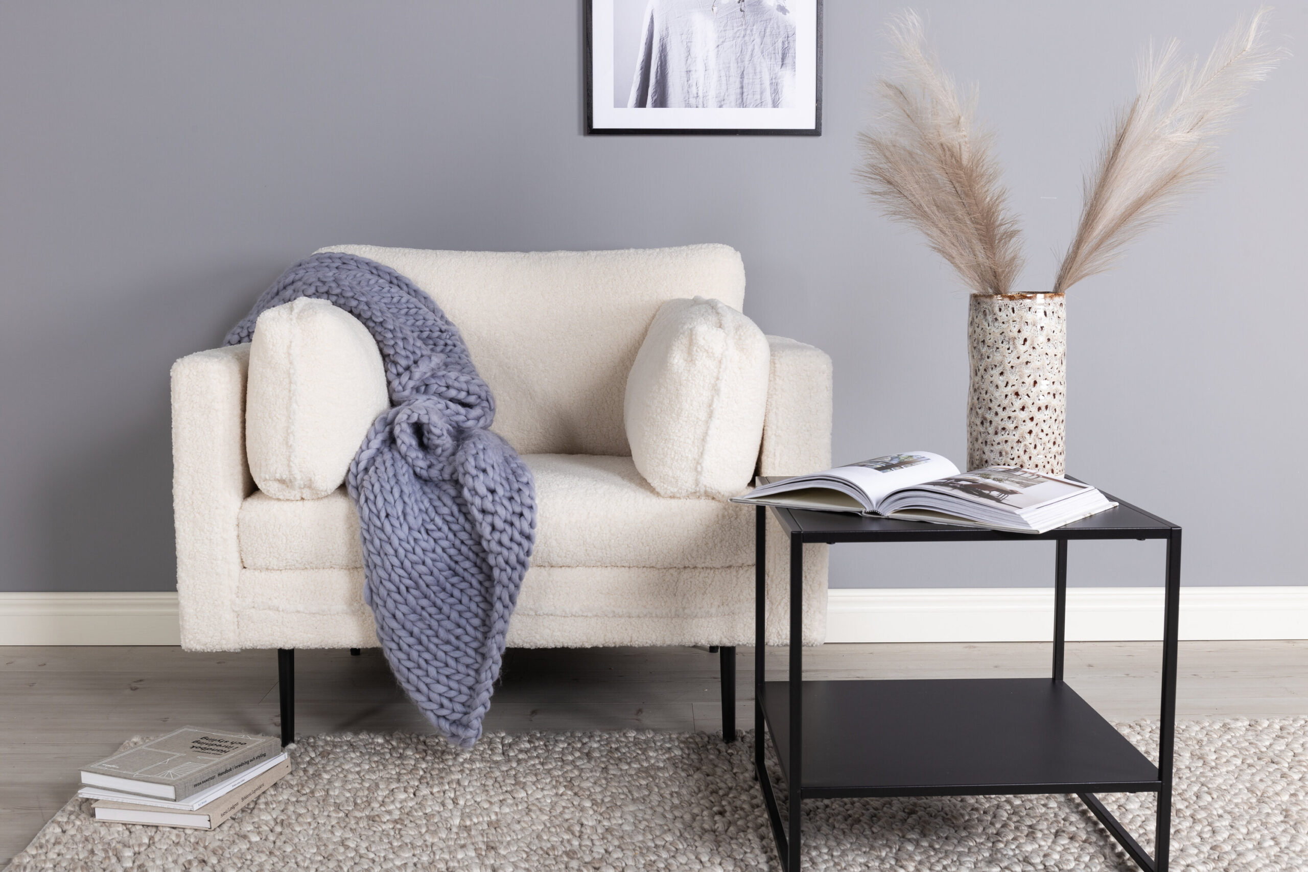Fauteuil Boom – Tissu bouclĂ© blanc