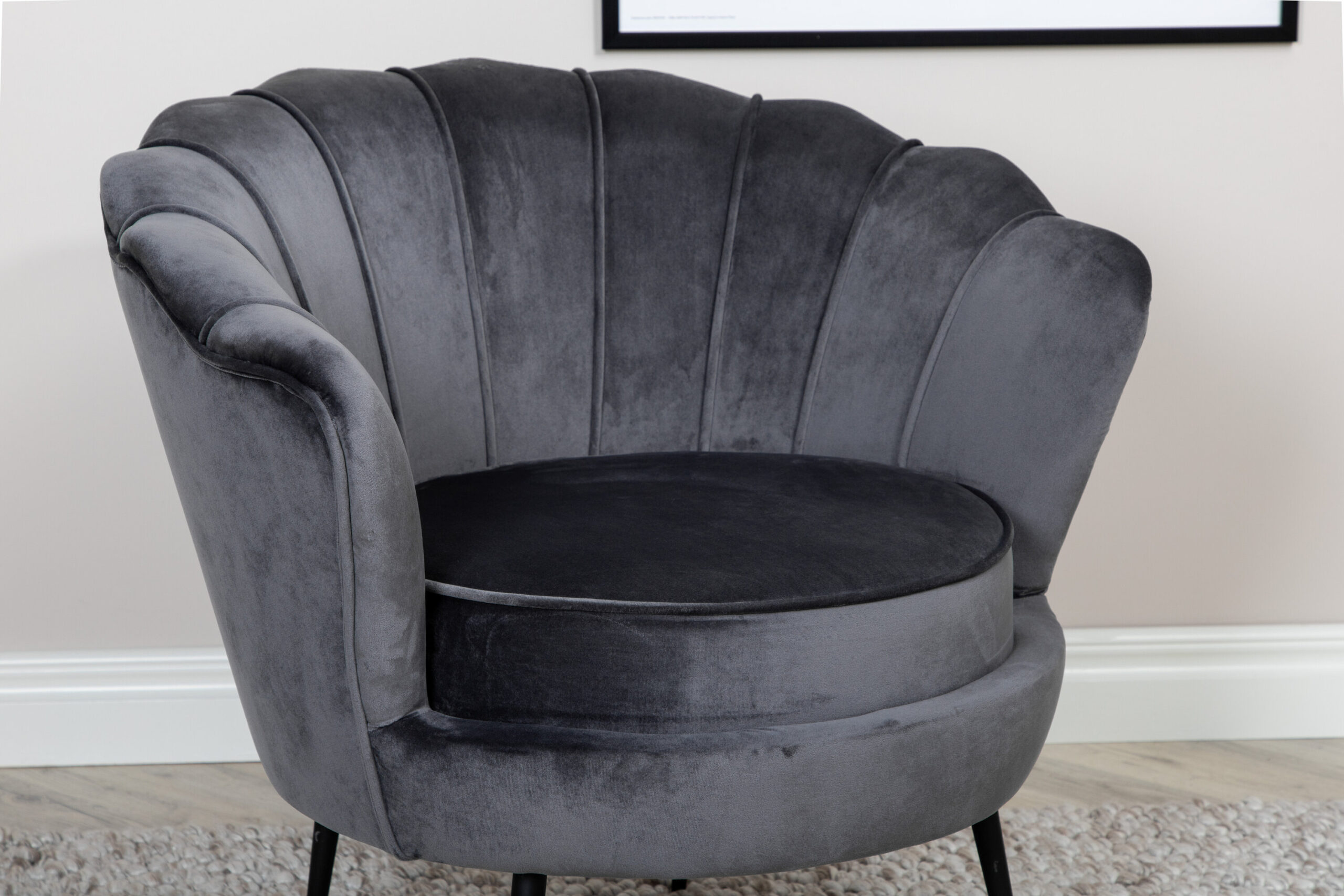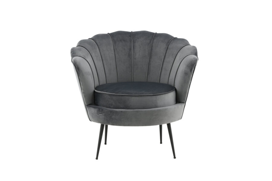 Fauteuil Calais – Velours gris foncĂ© et pieds noirs