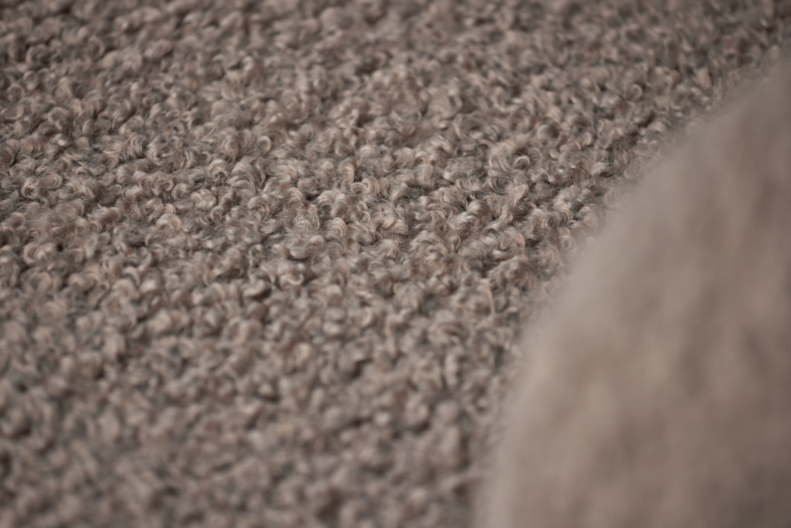 Fauteuil Nordkoster – Tissu bouclĂ© beige foncĂ© et pieds noirs
