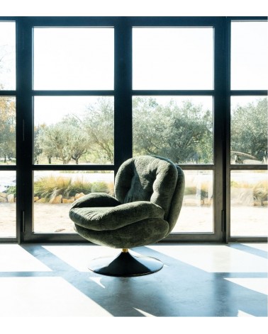 Gamme Memento — Athezza Uzès — Coloris kaki — Velours 100% polyester — Pied métal noir — Pivotant 360° — Mousse assise 25 kg/m³ — 86 × 81 × H83 cm — H assise 44,5 cm — Charge max 140 kg — 20 kg — Commandez sur Takoori, livraison en France.