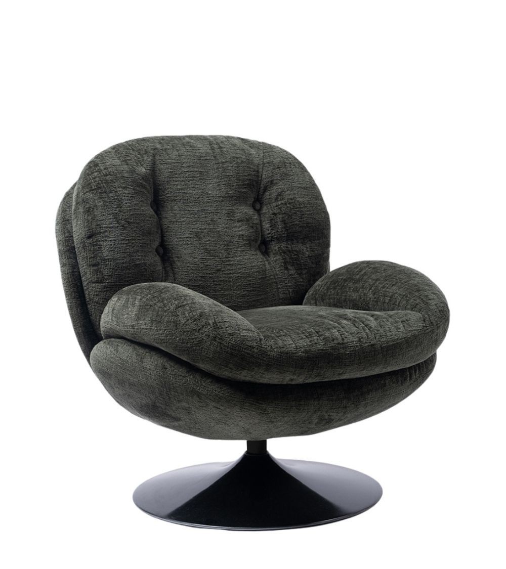 Le fauteuil pivotant velours kaki Memento d’Athezza habille la coque ronde Memento d’un velours kaki mat — vert olive sourd — sur piètement métal noir. Rotation 360° silencieuse, mousse 25 kg/m³, fabriqué à Uzès.