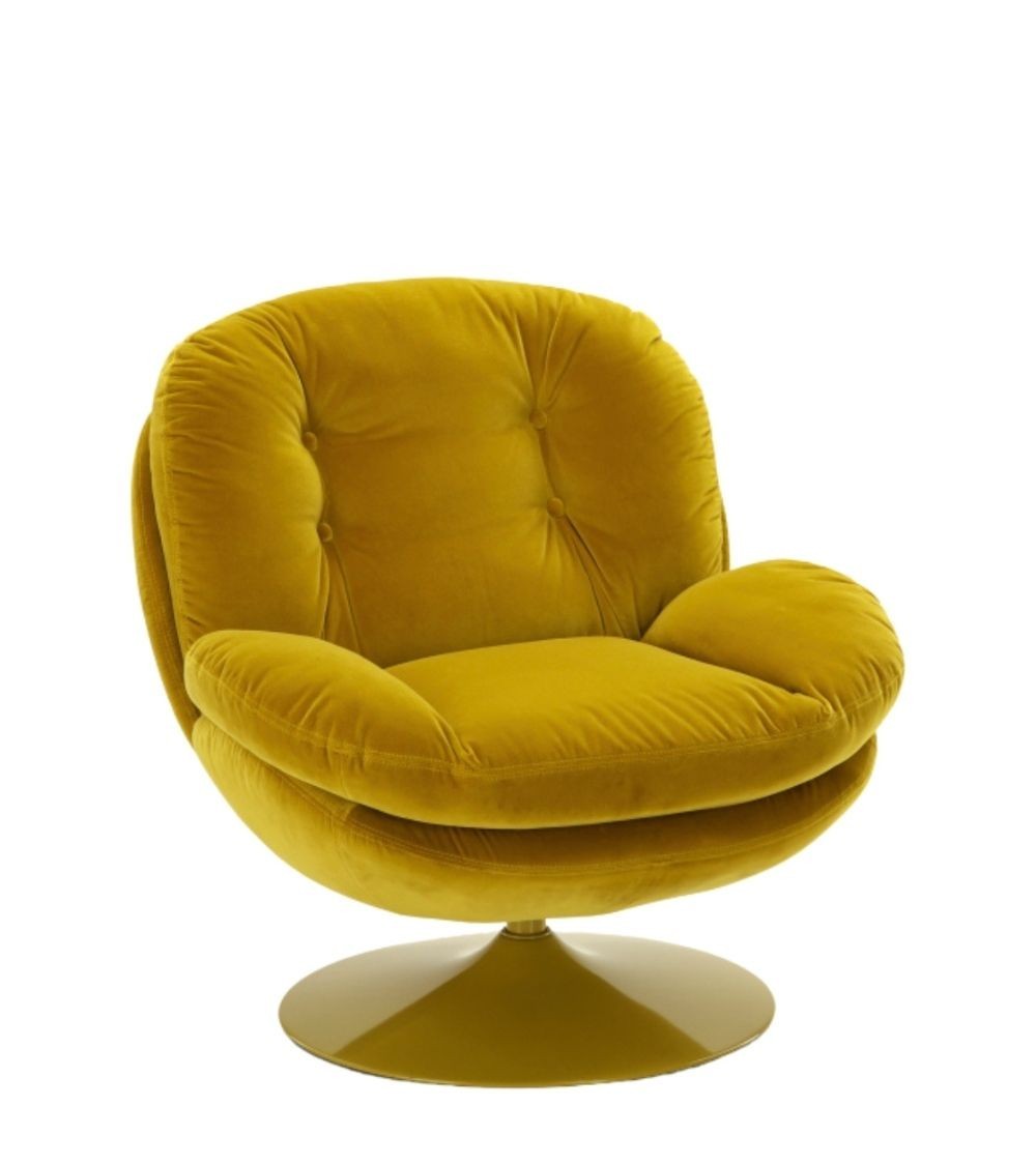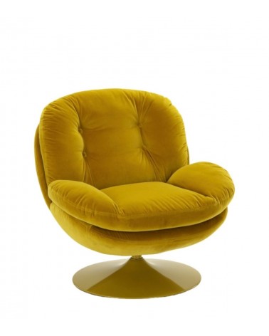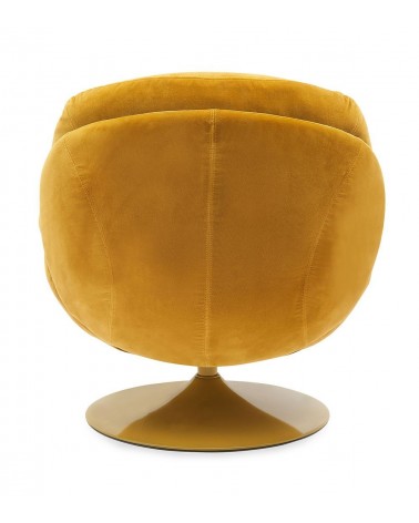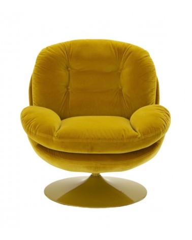 Gamme Memento POP — Athezza Uzès — Coloris moutarde — Velours de coton — Pied métal laqué moutarde — Pivotant 360° — Mousse assise 25 kg/m³ — 86 × 81 × H83 cm — H assise 44,5 cm — Charge max 140 kg — 20 kg — Commandez sur Takoori, livraison en France.
