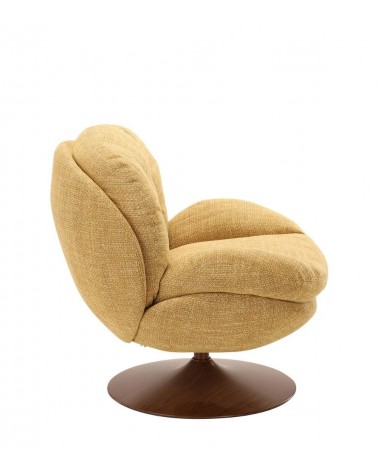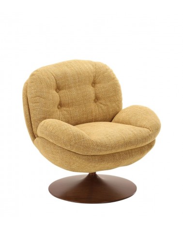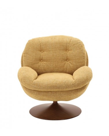Gamme Memento RETRO — Athezza Uzès — Coloris moutarde — Tissu 100% polyester grain rétro — Pied métal finition noyer — Pivotant 360° — Mousse assise 25 kg/m³ — 86 × 81 × H83 cm — H assise 47 cm — Charge max 140 kg — 18 kg — Commandez sur Takoori, livraison en France.