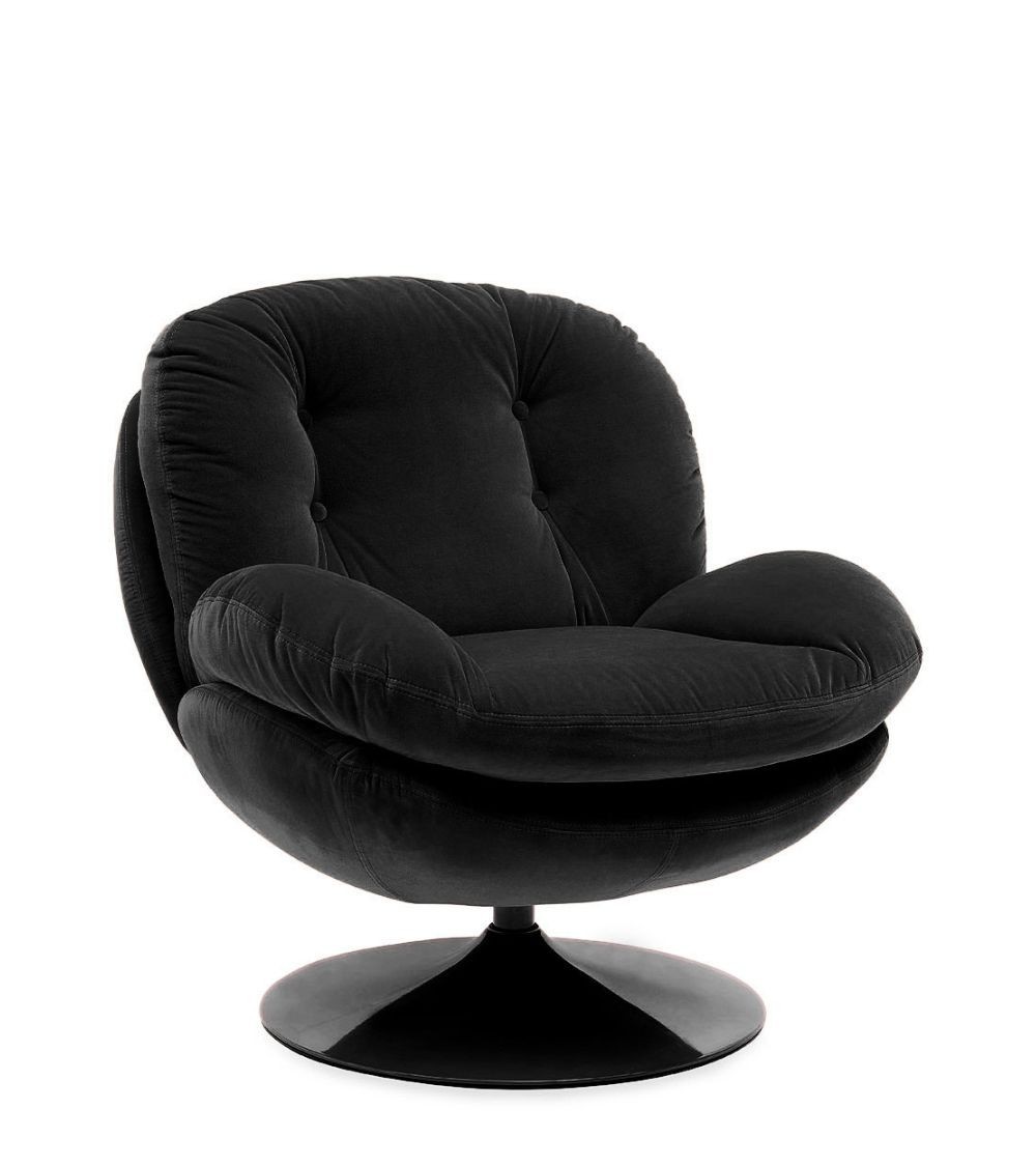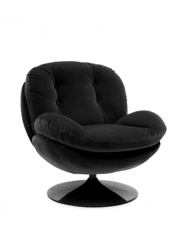 Gamme Memento POP — Athezza Uzès — Coloris noir — Velours de coton — Pied métal laqué noir — Pivotant 360° — Mousse assise 25 kg/m³ — 86 × 81 × H83 cm — H assise 44,5 cm — Charge max 140 kg — 20 kg — Commandez sur Takoori, livraison en France.