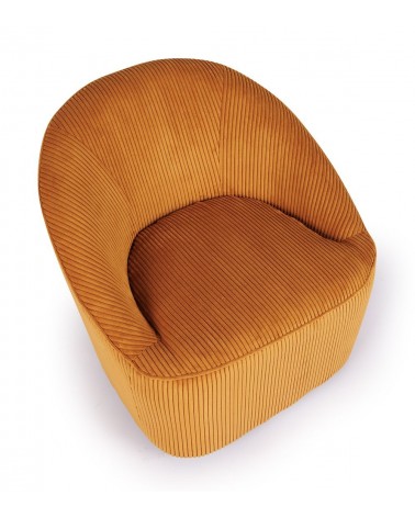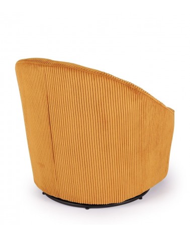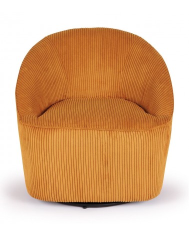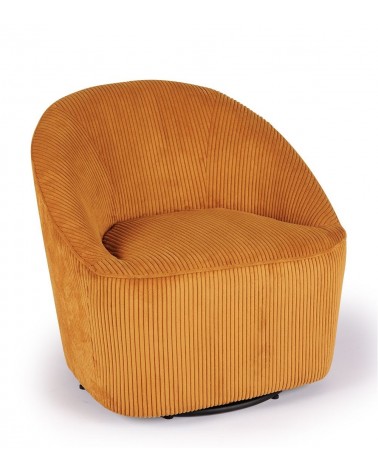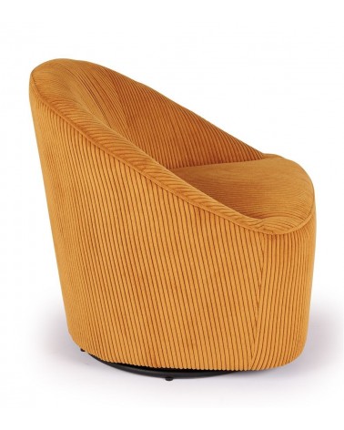 Fauteuil Pivotant Viby — Athezza Uzès — Coloris ocre — Velours 100% polyester — Pied métal — Pivotant 360° — Mousse assise 28 kg/m³ — 74 × 77 × H77 cm — H assise 45 cm — 18 kg — Commandez sur Takoori, livraison en France.