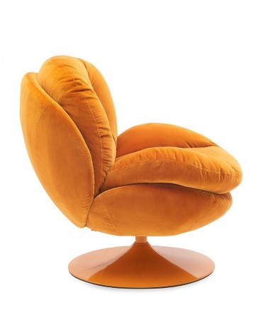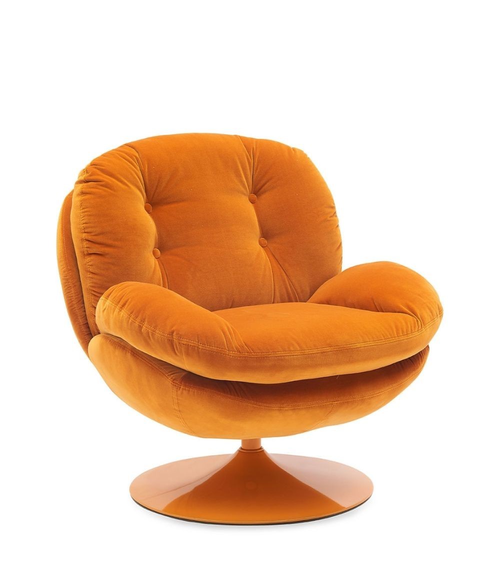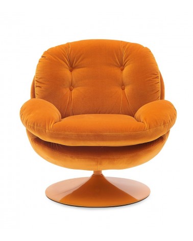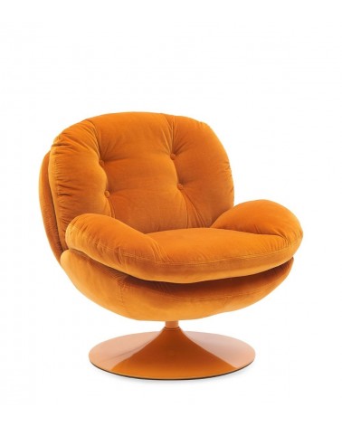 Gamme Memento POP — Athezza Uzès — Coloris orange — Velours de coton — Pied métal laqué orange — Pivotant 360° — Mousse assise 25 kg/m³ — 86 × 81 × H83 cm — H assise 44,5 cm — Charge max 140 kg — 20 kg — Commandez sur Takoori, livraison en France.