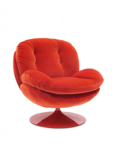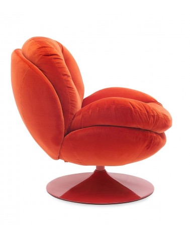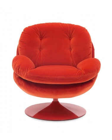 Gamme Memento POP — Athezza Uzès — Coloris rouge — Velours de coton — Pied métal laqué rouge — Pivotant 360° — Mousse assise 25 kg/m³ — 86 × 81 × H83 cm — H assise 44,5 cm — Charge max 140 kg — 20 kg — Commandez sur Takoori, livraison en France.