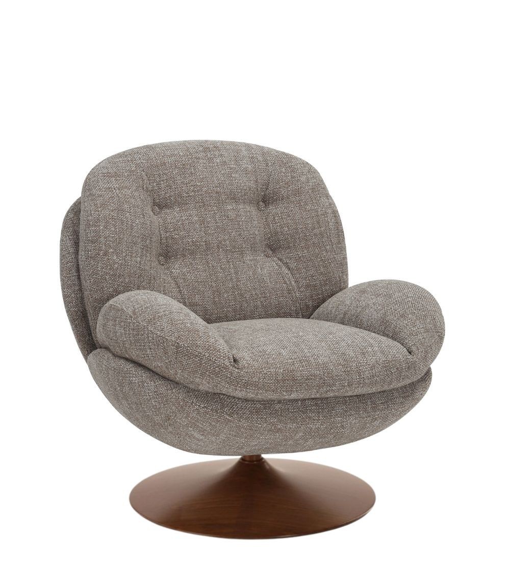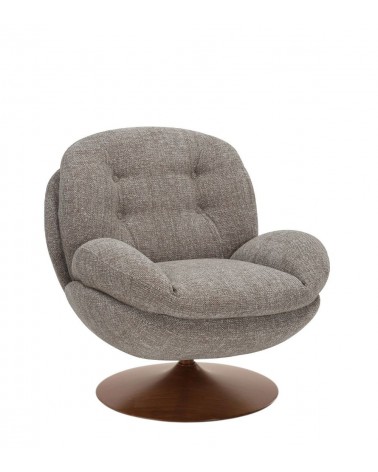 Gamme Memento RETRO — Athezza Uzès — Coloris taupe — Tissu 100% polyester grain rétro — Pied métal finition noyer — Pivotant 360° — Mousse assise 25 kg/m³ — 86 × 81 × H83 cm — H assise 47 cm — Charge max 140 kg — 18 kg — Commandez sur Takoori, livraison en France.