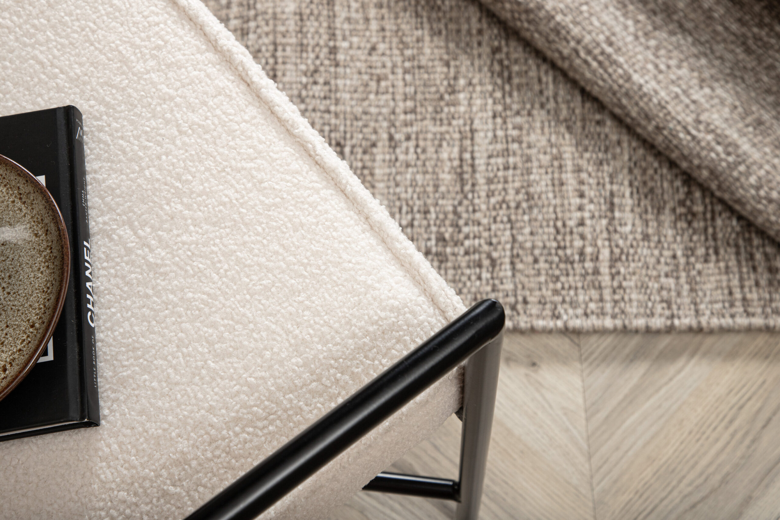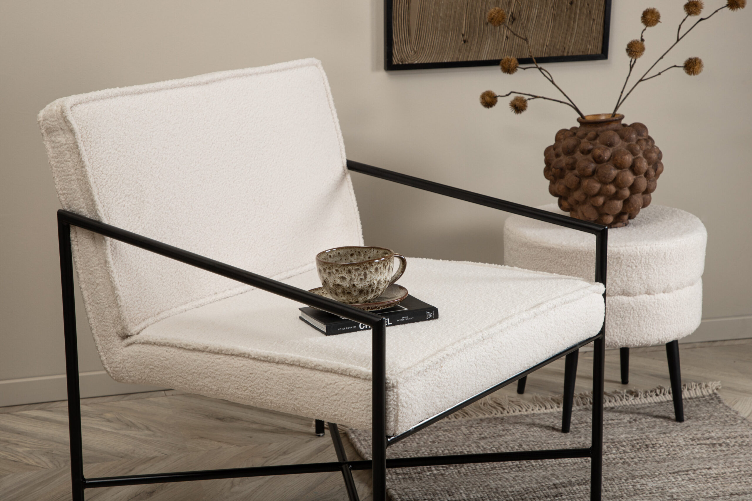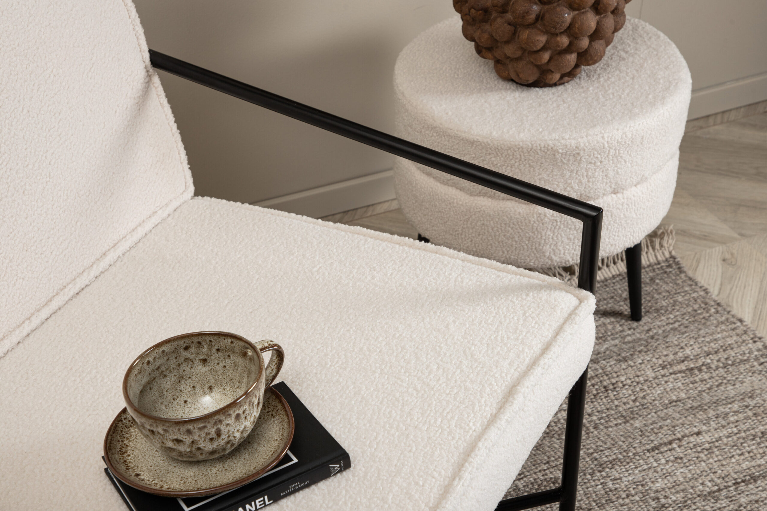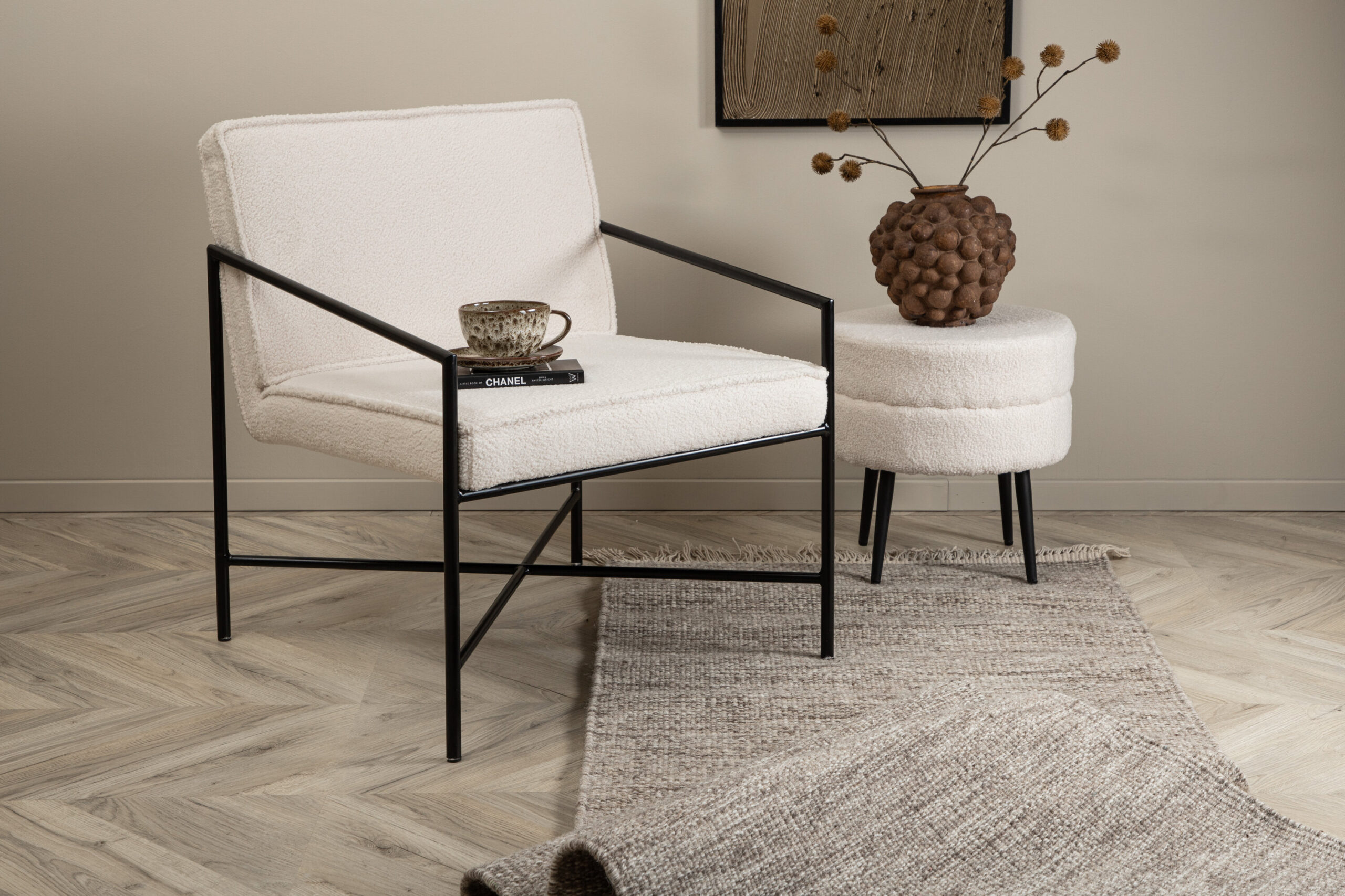 Fauteuil Rakel – Tissu bouclĂ© blanc cassĂ© et pieds noirs