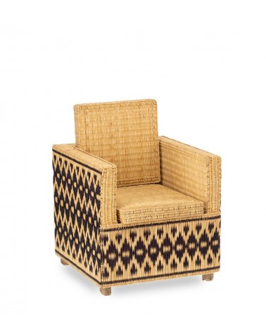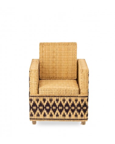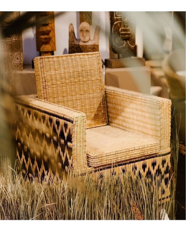 Fauteuil Mogador — Athezza Uzès — Coloris noir — Matières fer + herbe tressée — Dossier H90 cm — Usage intérieur — 65 × 70 × H90 cm — 20 kg — Commandez sur Takoori, livraison en France.