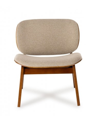 Fauteuil Kuji Structure Bois — Athezza Uzès — Coloris beige — Tissu 100% polyester — Pieds chêne massif — Dos contreplaqué chêne apparent — Mousse 21 kg/m³ — 61 × 64 × H68 cm — H assise 41 cm — 8 kg — Commandez sur Takoori, livraison en France.