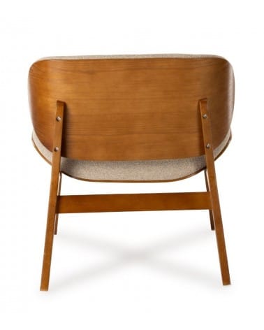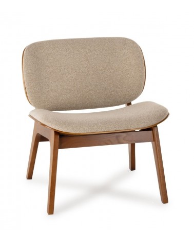 Le fauteuil design Kuji beige Structure Bois d’Athezza associe un revêtement tissu beige chaud à une structure chêne contreplaqué apparente au dos, avec pieds en bois massif. Hauteur d’assise 41 cm, mousse 21 kg/m³, fabriqué à Uzès.