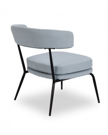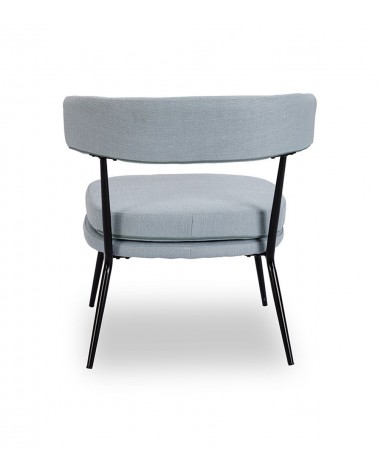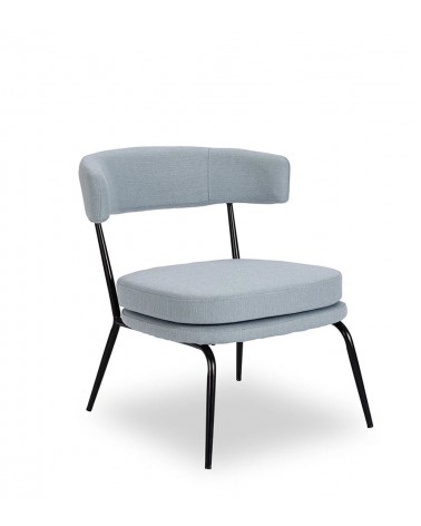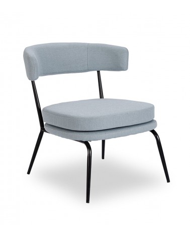 Fauteuil Rigel — Athezza Uzès — Coloris bleu ciel — Tissu 100% polyester — Armature métal noir — Mousse 25 kg/m³ — 70 × 68 × H72 cm — H assise 44 cm — 7 kg — Commandez sur Takoori, livraison en France.