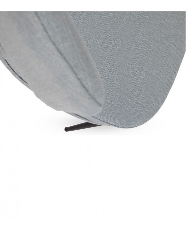 Assise 55 × 49 cm à 44 cm du sol. Mousse assise 25 kg/m³. Armature métal noir. Tissu 100% polyester bleu ciel. 70 × 68 × H72 cm. 7 kg. Structure légère qui facilite le déplacement.