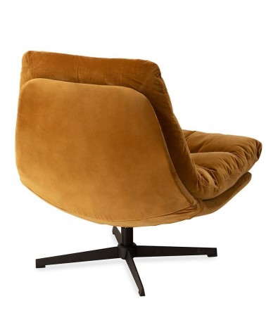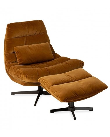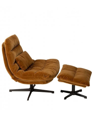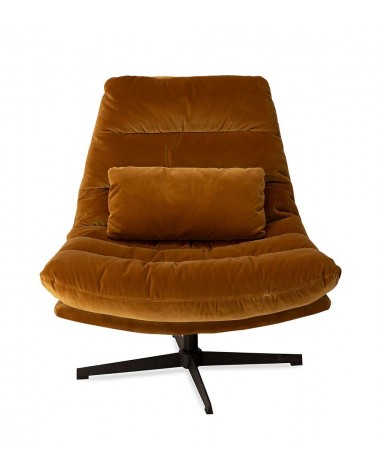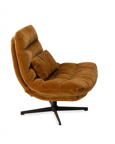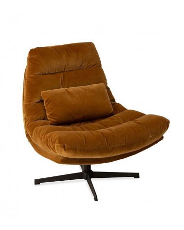 Fauteuil Wilmington — Athezza Uzès — Coloris camel — Velours 100% coton — Piètement métal — Mousse 35 kg/m³ assise et dossier — 84 × 84 × H94 cm — H assise 48 cm — 18 kg — Commandez sur Takoori, livraison en France.