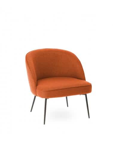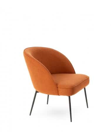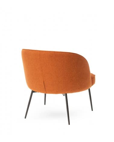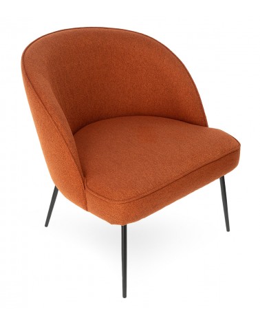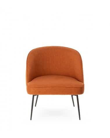 Fauteuil Luca — Athezza Uzès — Coloris orange brûlé — Velours 100% polyester — Piétement métal — Mousse 25 kg/m³ assise — 70 × 65 × H72 cm — H assise 41 cm — 8 kg — Commandez sur Takoori, livraison en France.