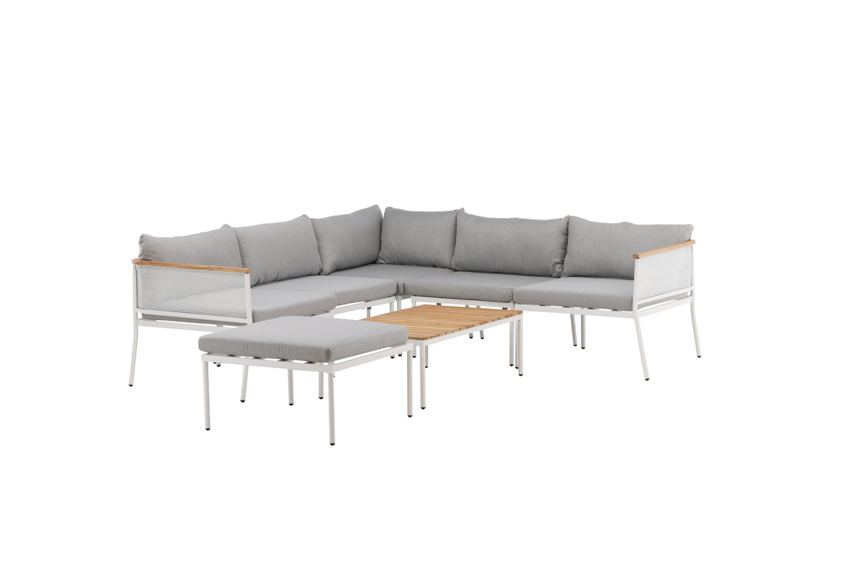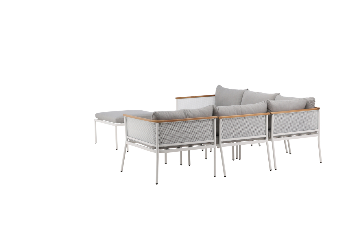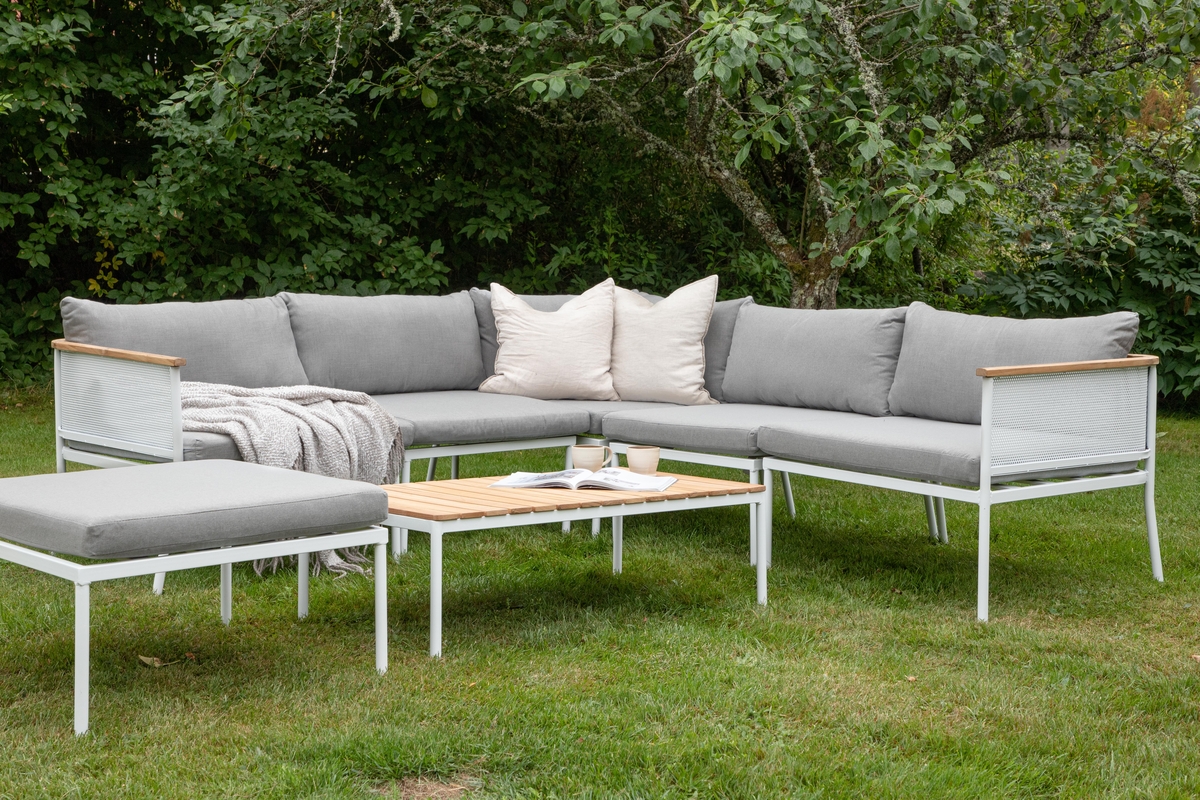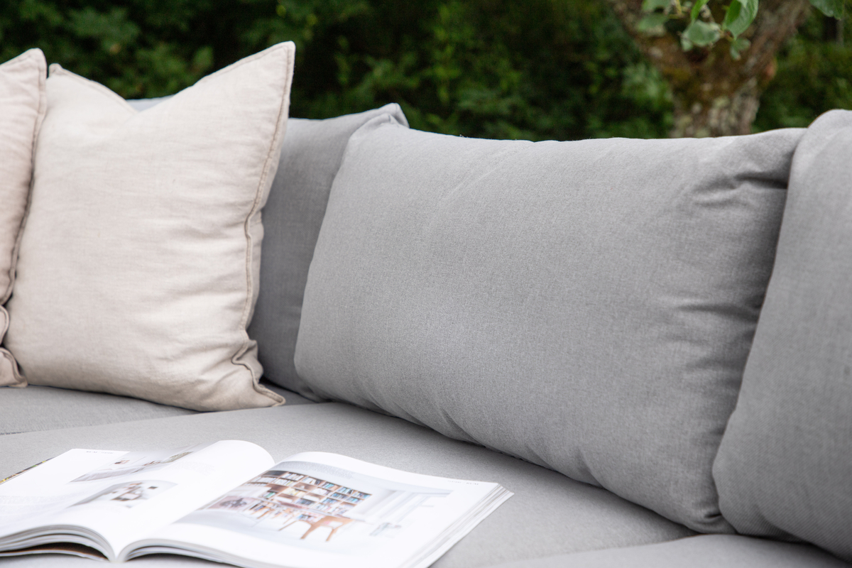 Mobilier lounge de jardin en acier gris avec coussins Nettan