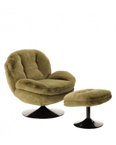 Repose-pieds Memento — Athezza Uzès — Coloris kaki — Fausse fourrure + métal — 50 × 45 × H44 cm — 5 kg — 169€ — Commandez sur Takoori, livraison en France.