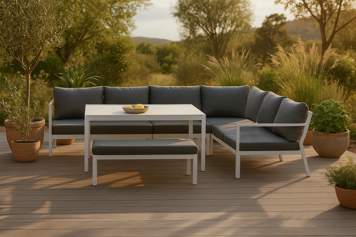 Salon de jardin en aluminium gris avec coussins Ramos
