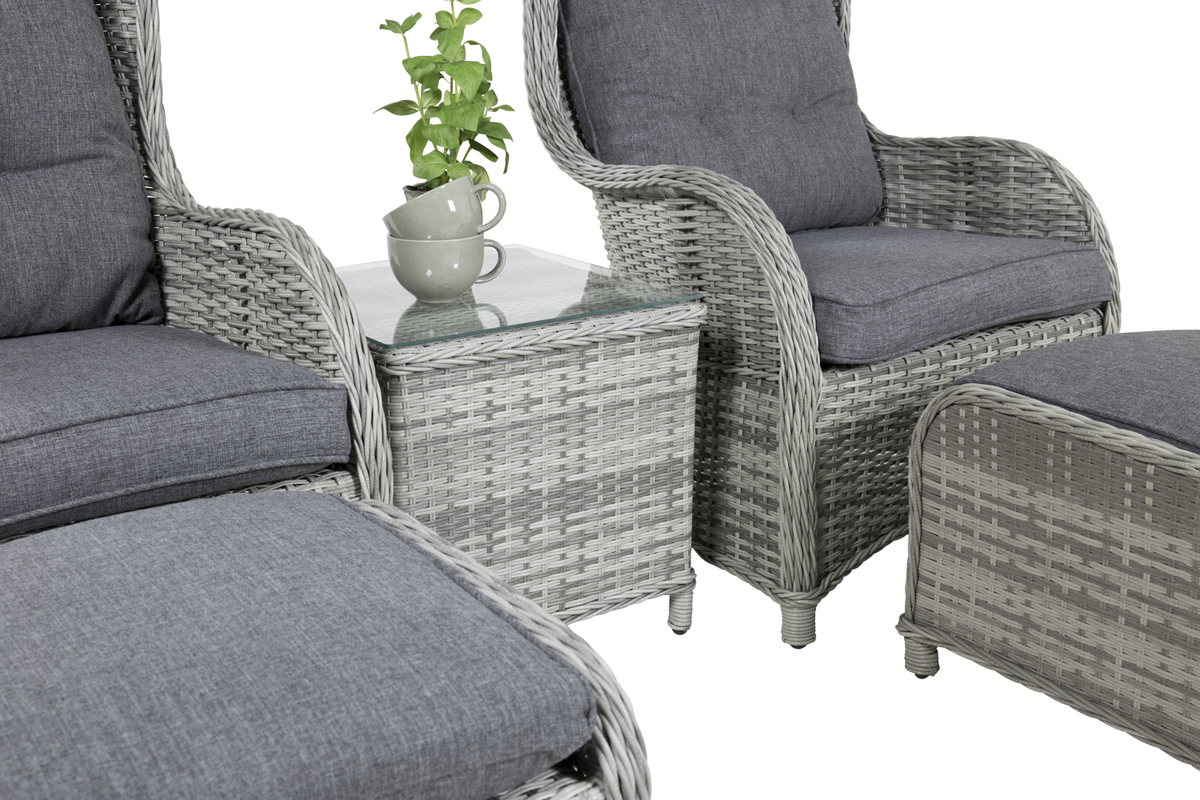 Salon de jardin en osier gris avec coussins Lyxig
