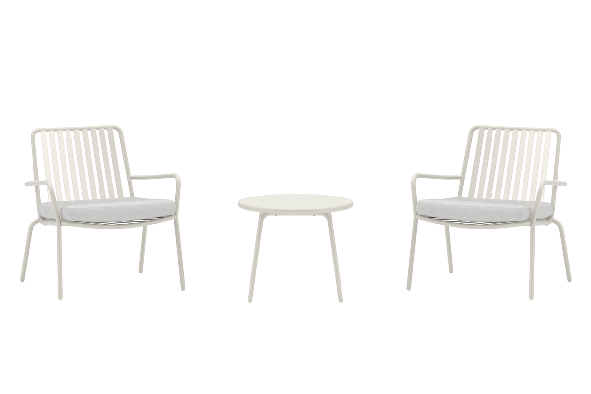 Salon d’extérieur en acier beige avec coussins Mykonos