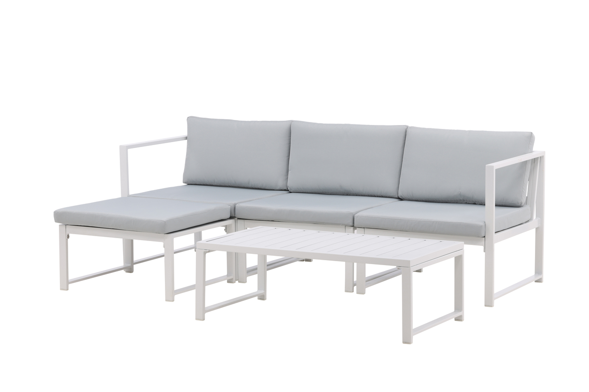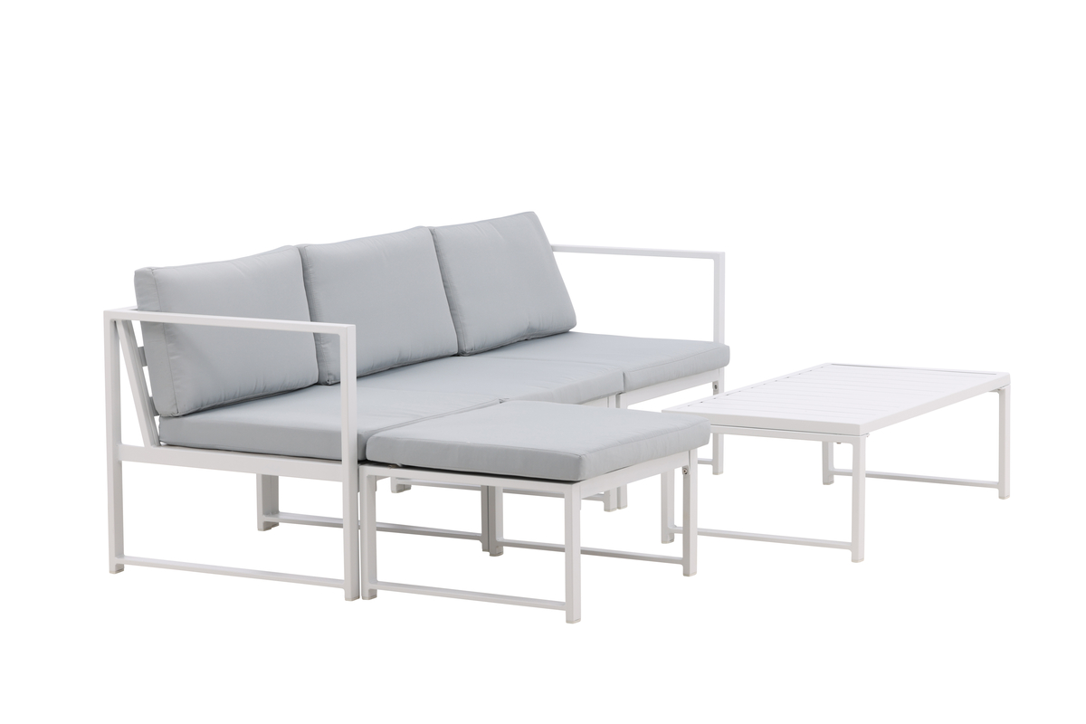 Salon d’extérieur en aluminium blanc avec coussins Salvador