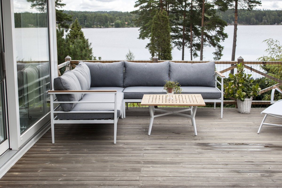 Salon d’extérieur en aluminium gris avec coussins Salon de Jardin d’Angle