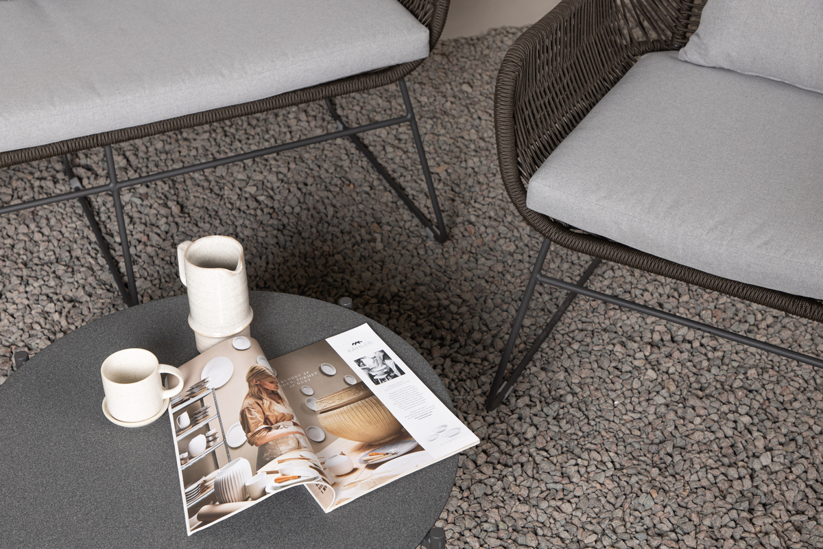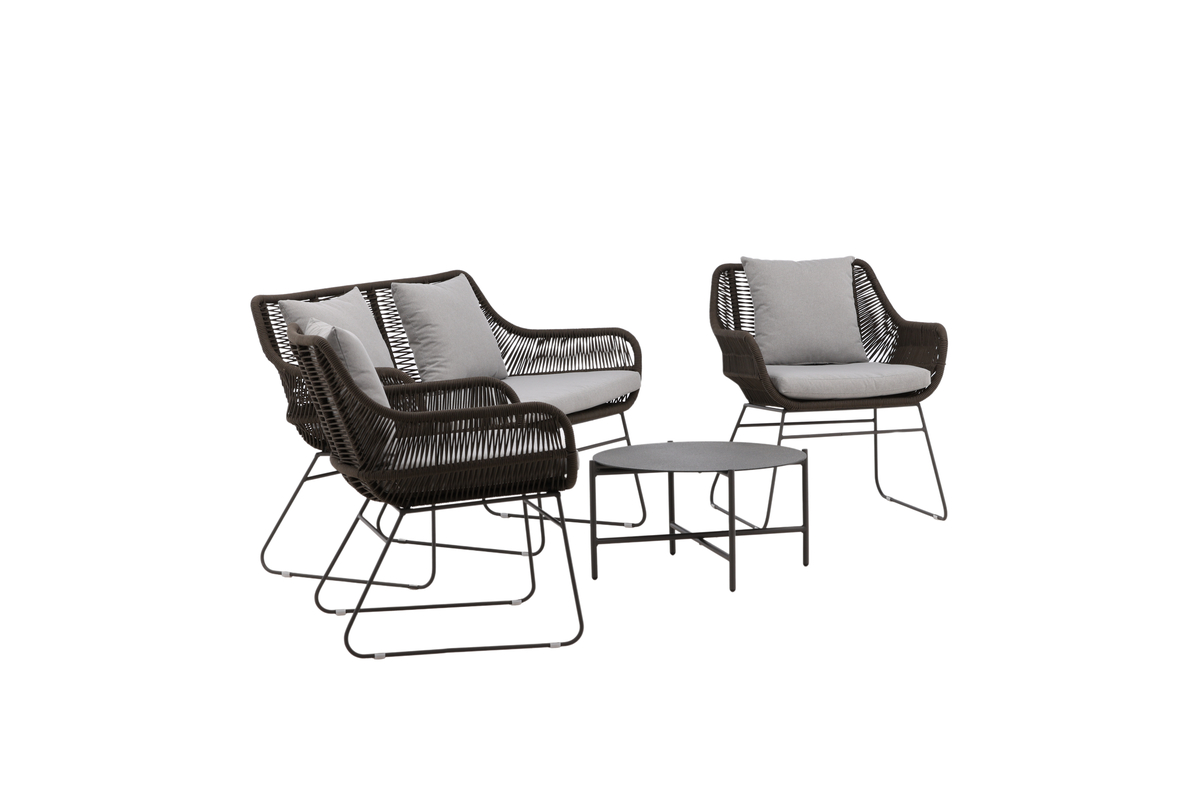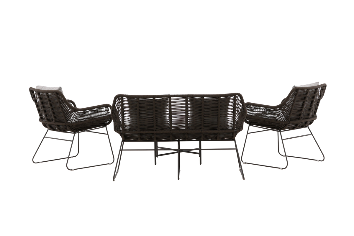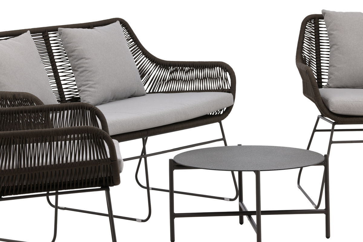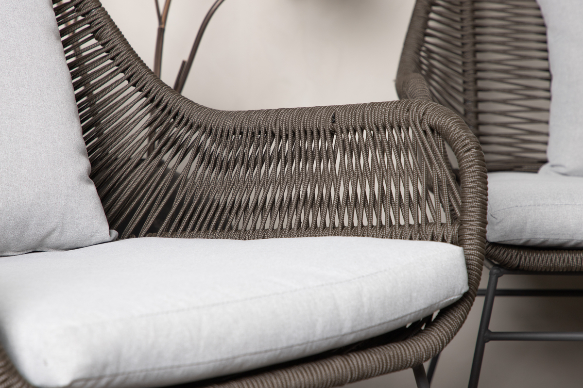 Salon d’extérieur en polyester rope marron avec coussins Introducerar