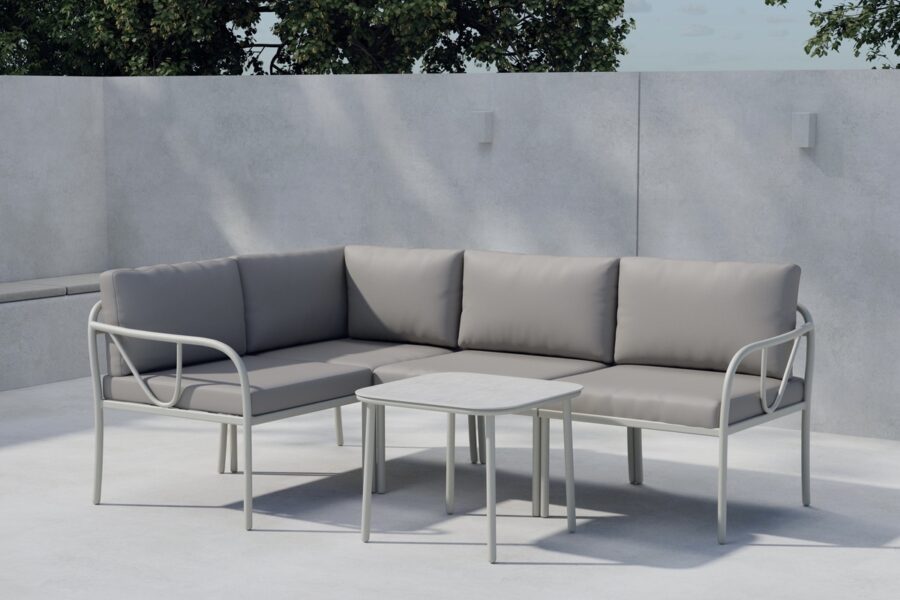 Salon outdoor en acier greige avec coussins Salon de Jardin d’Angle