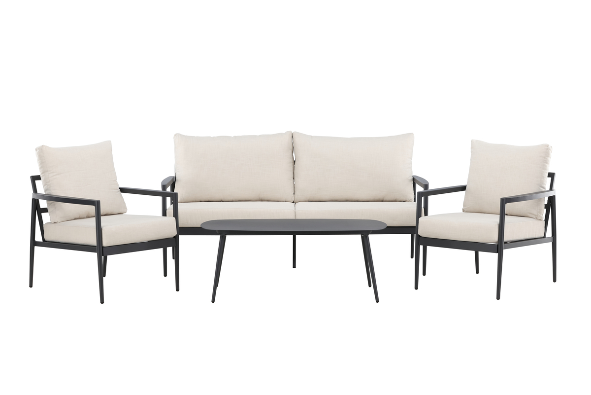 Salon outdoor en aluminium noir avec coussins Taromina