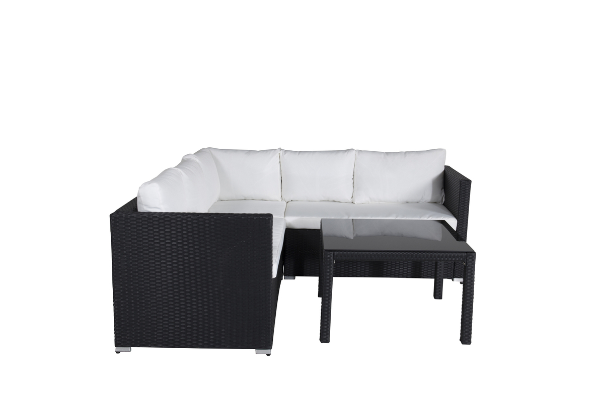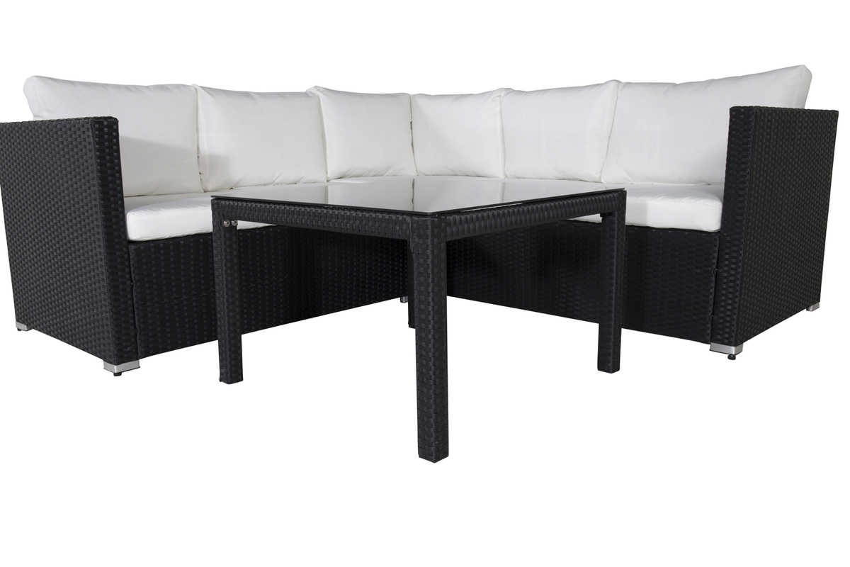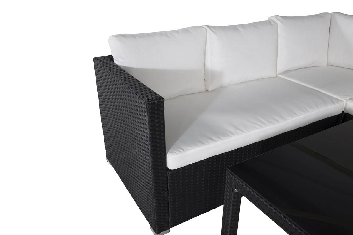 Salon outdoor en osier noir avec coussins Kuba