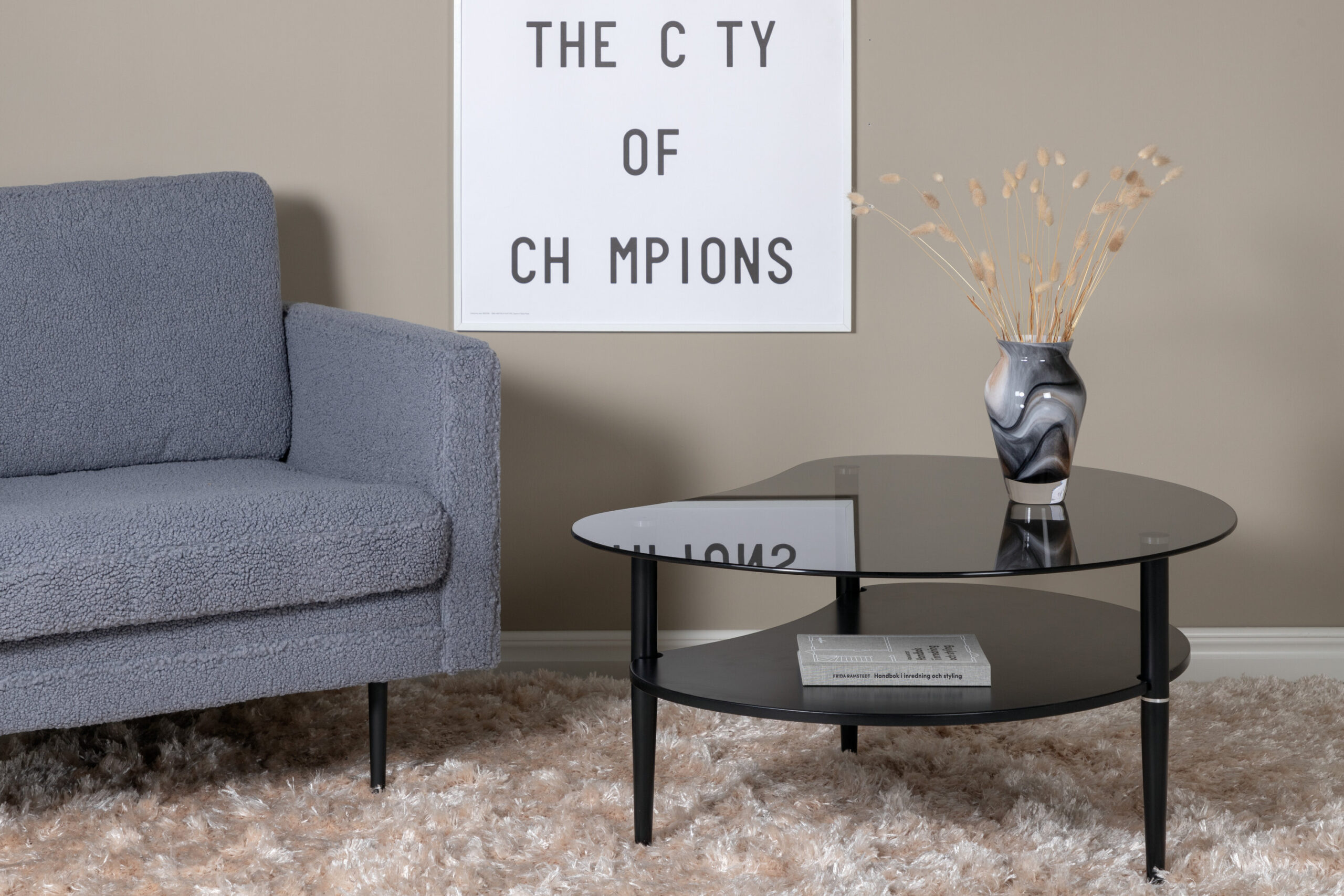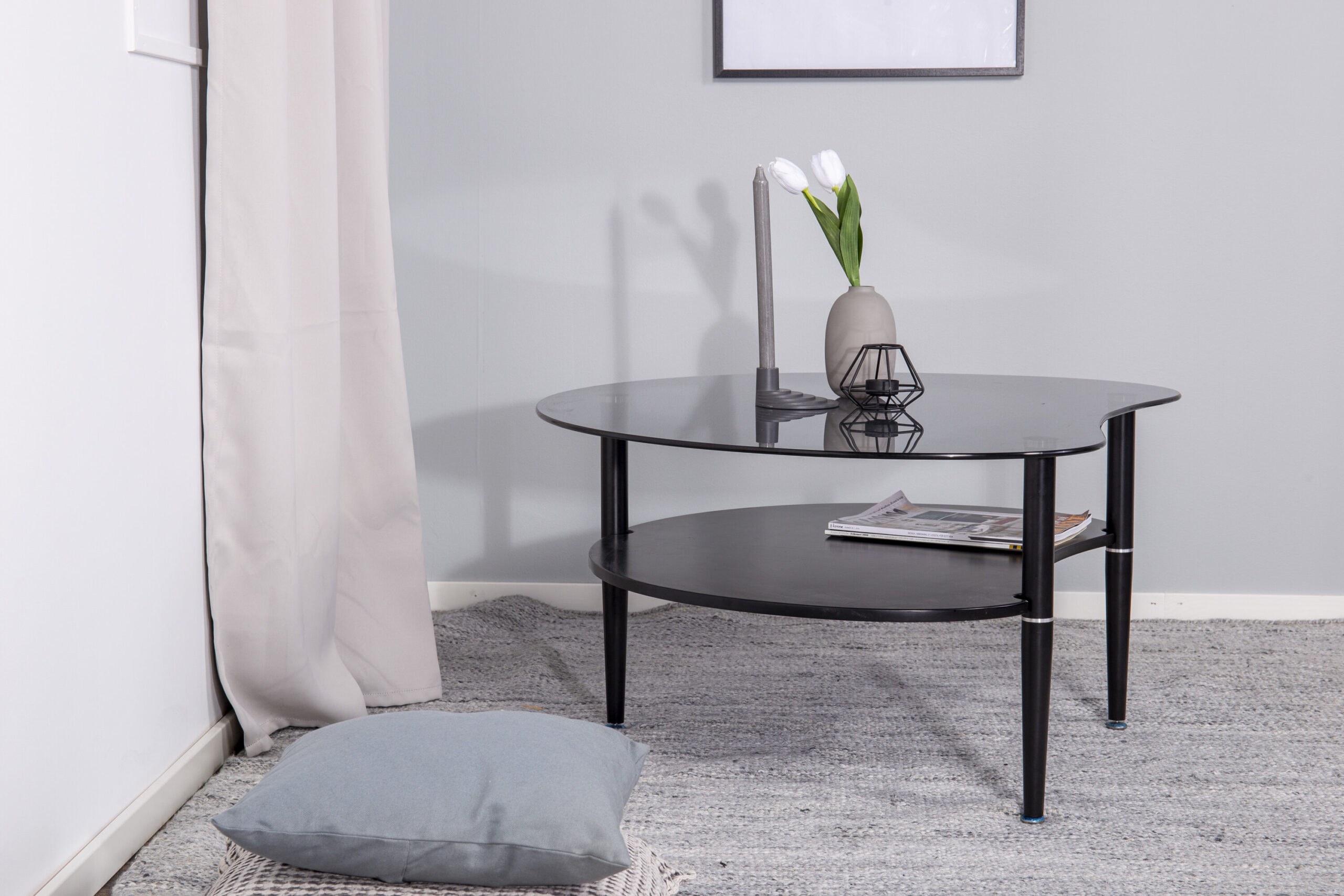 Table basse Egg – Noir / Verre fumé gris