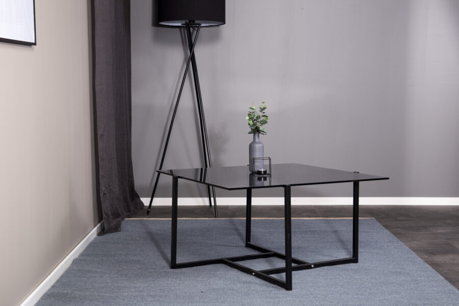 Table basse Hybrid – 80×80 cm – Noir / Verre fumé gris