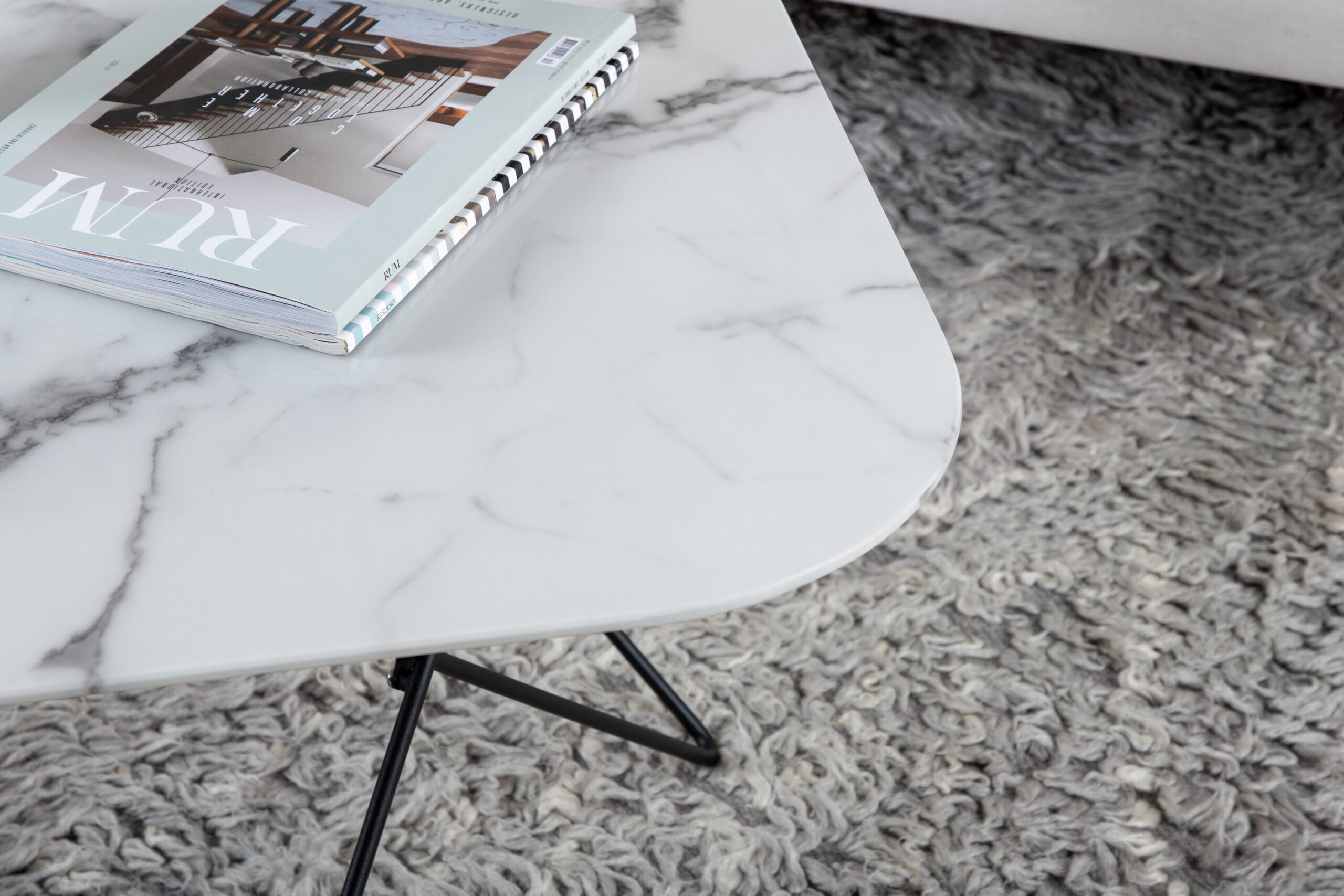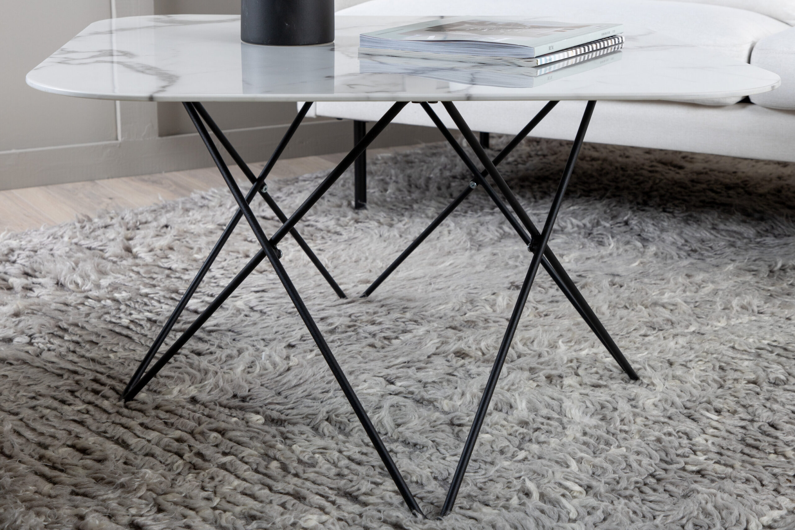 Table basse Tristar – Noir / Marbre verre blanc