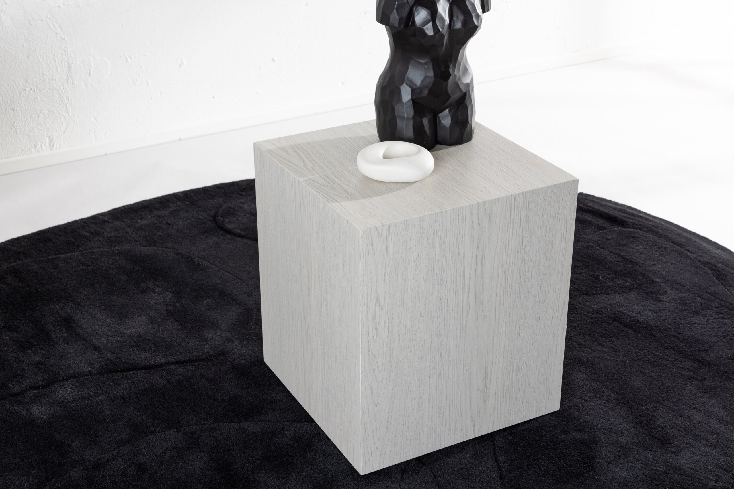 Table basse York haute – Bois blanchi / blanc
